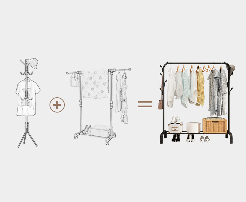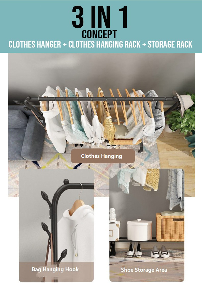(SG STOCK) Sturdy Steel Pipe Clothes Rack Drying/ Clothing Stand / Coat Hanger / Hat Shoes Rack