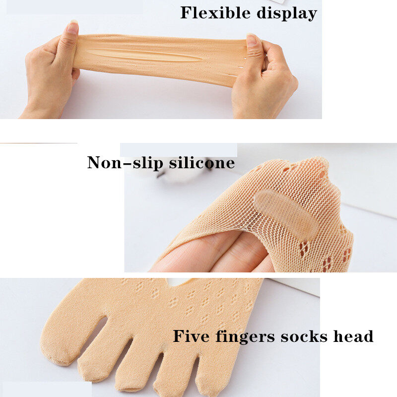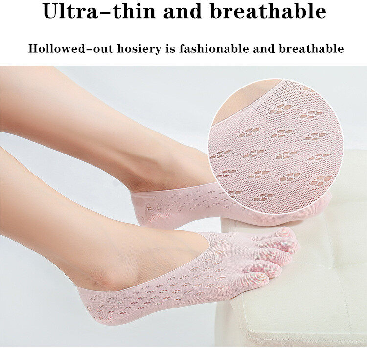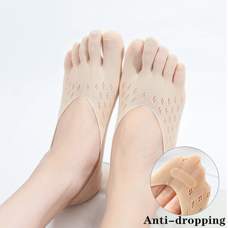 5 Pairs Summer Five Finger Socks Women's Silk Thin Yoga Sock Woman Solid color Velvet Mesh Shallow Mouth Boat Socks Ladies Anti-dropping Running Invisible Five Toes Socks