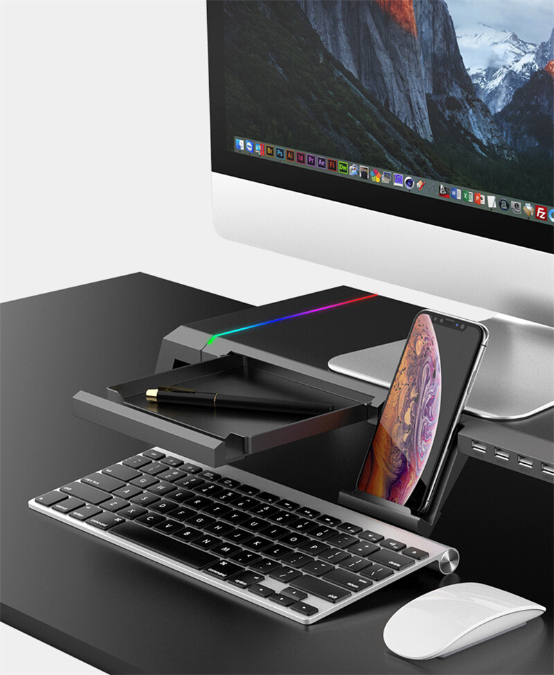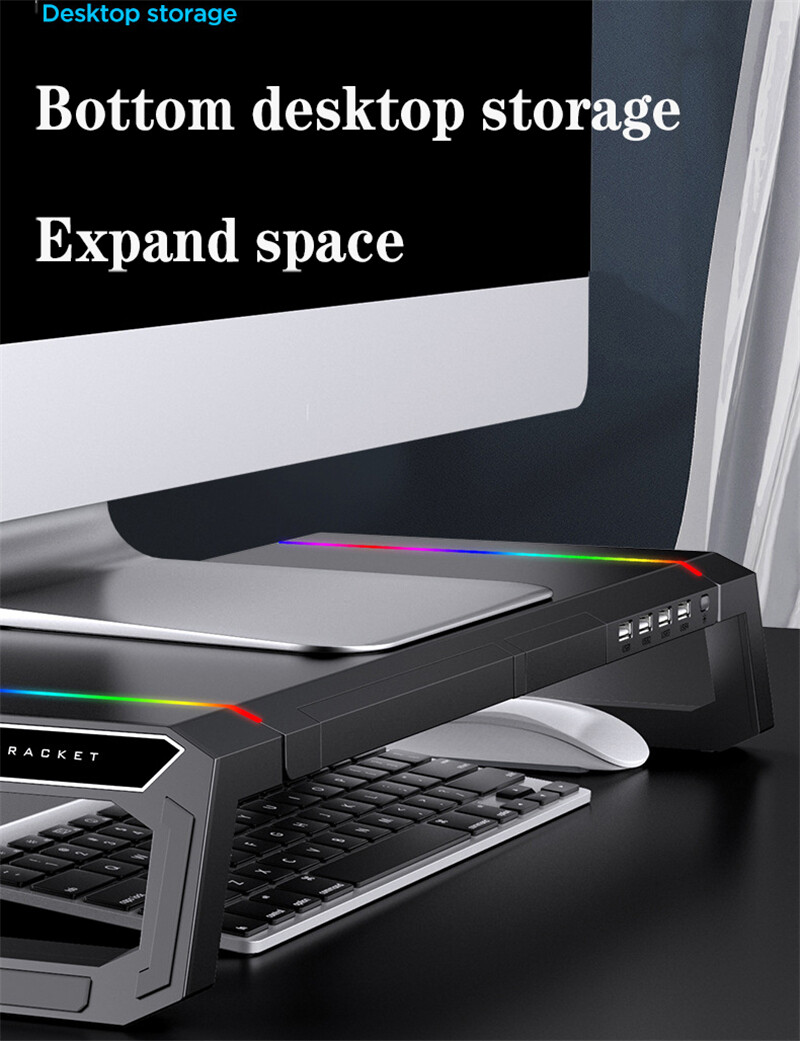 JDB RGB laptop stand monitor increase rack multi-function monitor stand built-in 4 port usb interface built-in mobile phone stand tablet stand