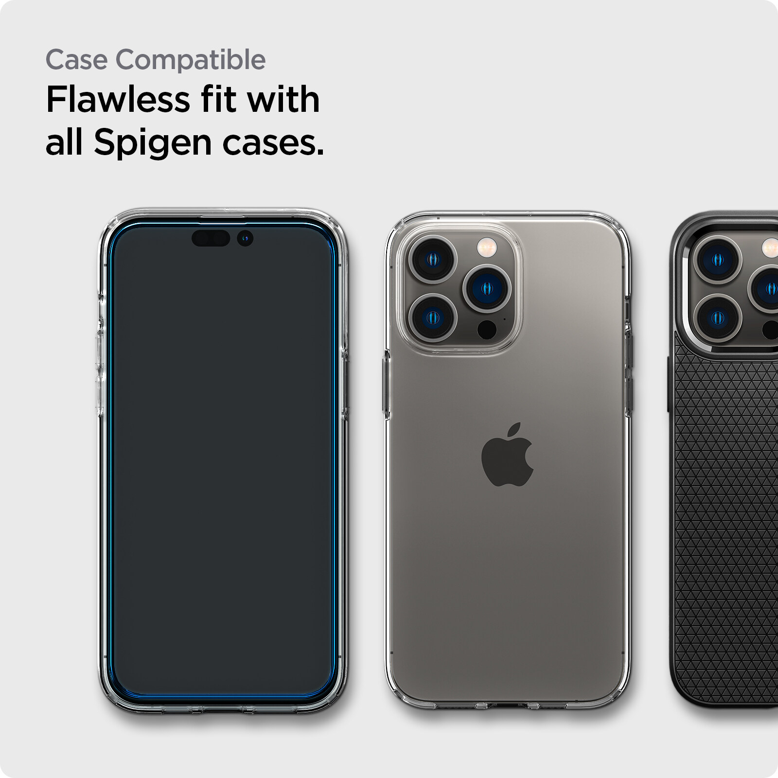 SPIGEN 2PACK Full Coverage Screen Protector for iPhone 14 Series / 13 Pro Max [Align Master FC Black] Easy alignment tray for the perfect glass installation / iPhone 14 Screen Protector / iPhone 14 G