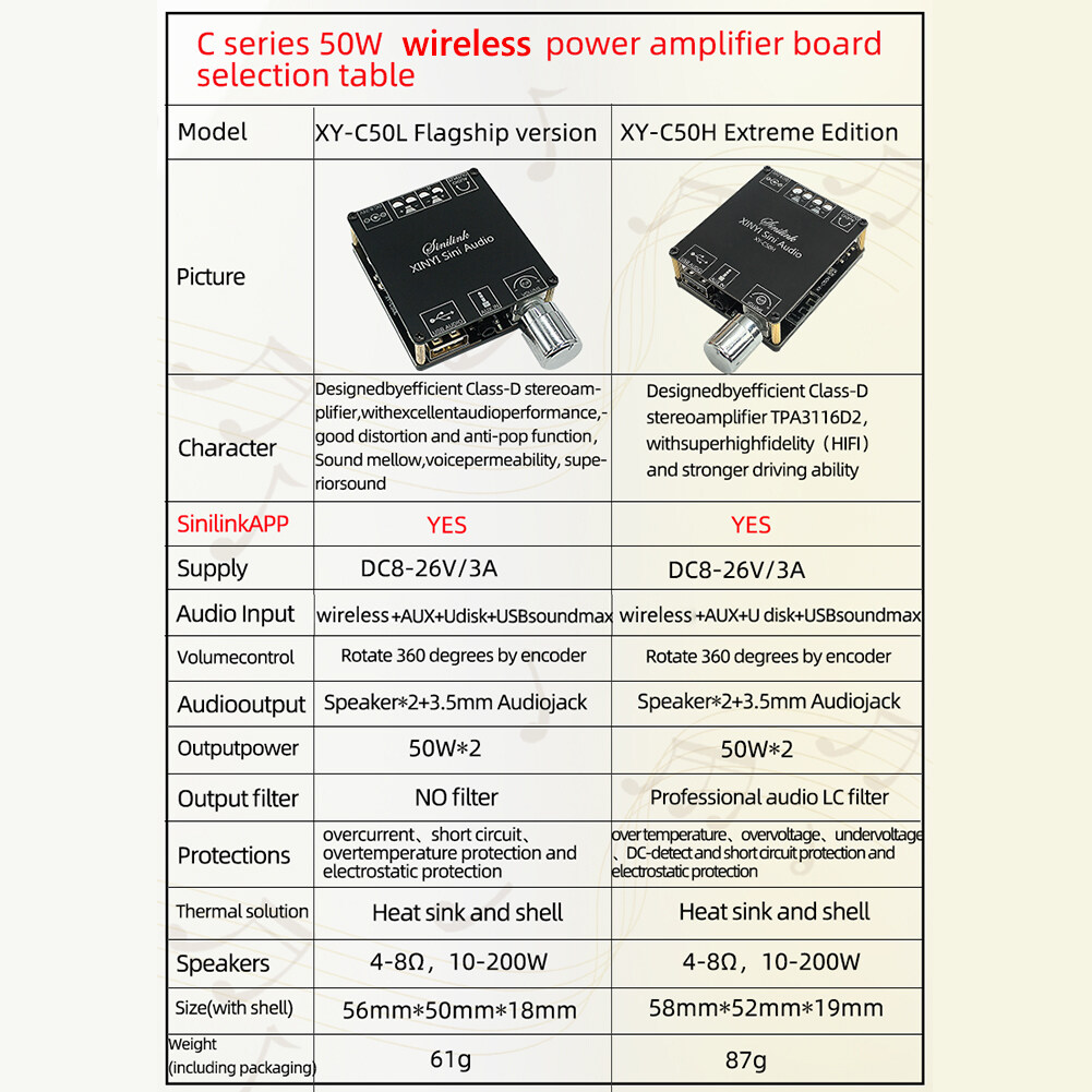 XY-C50L 50Wx2 Digital Amplifier Board APP Control Bluetooth-Compatible Audio Module Stereo Speaker Subwoofer Modulator Set