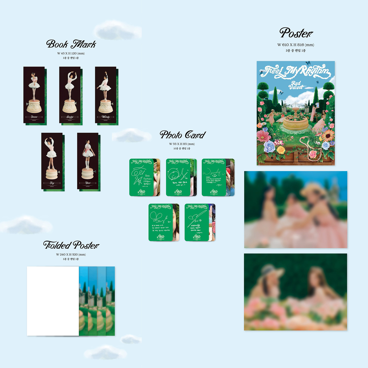 ❥ Red Velvet - Mini Album [The ReVe Festival 2022 - Feel My Rhythm] ✿ FEATURES ✿ □ Release Date ■ 2022.03.22 □ Version ■ ReVe Ver. (2 Type) □ Components [ReVe Ver.](capriccioso / calmato) ■ Dust Jacket (2 Type) ■ Cover (2 Type) ■ CD-R (2 Type) ■ 108p Photobook ■ Sticker (Random 1 out of 2) ■ Book Mark (Random 1 out of 5) ■ Folded Poster (Random 1 out of 5) ■ Photocard (Random 1 out of 10) ■ Poster (Random 1 out of 3) * Poster is Optional ⯌ FREE GIFT ❥・•Only TrendK Store Gift~❥ ? 2 Red Velvet Print Badges ? 4 Extra Photocards ✶ Free gift's image may change without notice. ✶ Even if you purchase multiple albums, only one of the same Free Gift is provided.