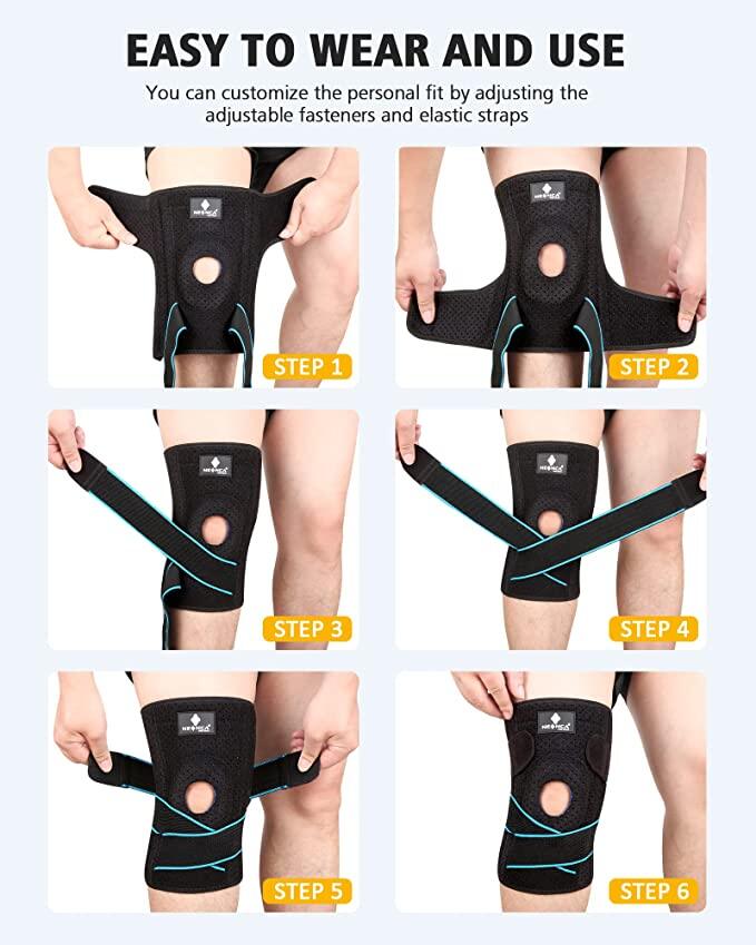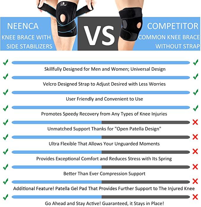 NEENCA Knee Brace with Side Stabilizers & Patella Gel Pads, Adjustable Compression Knee Support Braces for Knee Pain, Meniscus Tear,ACL,MCL,Arthritis, Joint Pain Relief,Injury Recovery-4 Sizes.