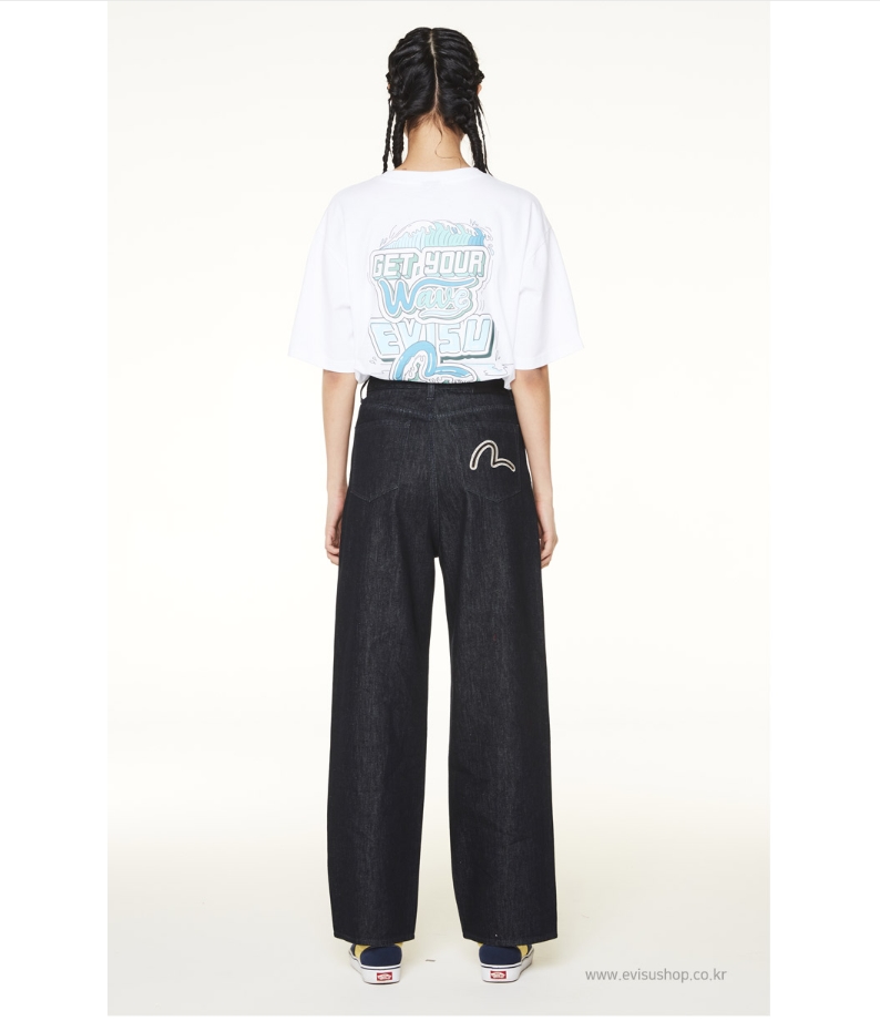 [EVISU KOREA ] 100% Authentic Wave Illustration Loose Fit T-Shirt