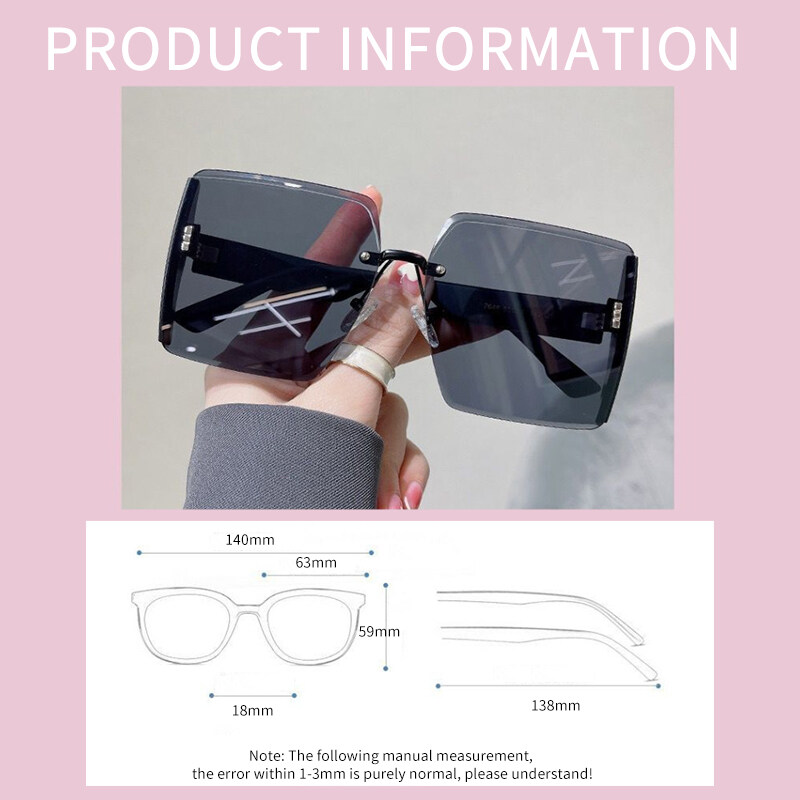 【Specification】 Product Name: Sunglasses Brand: PTQ Frame Type: Frameless Frame shape: Square Lens material: PC Frame material: PC Color: 4 Colors To Choose From Weight: 30g Style: Leisure Function: UV400