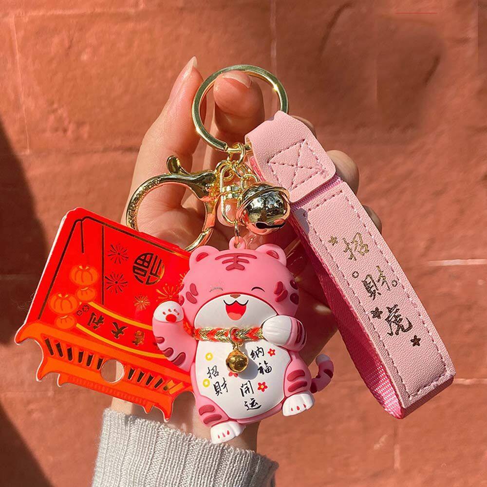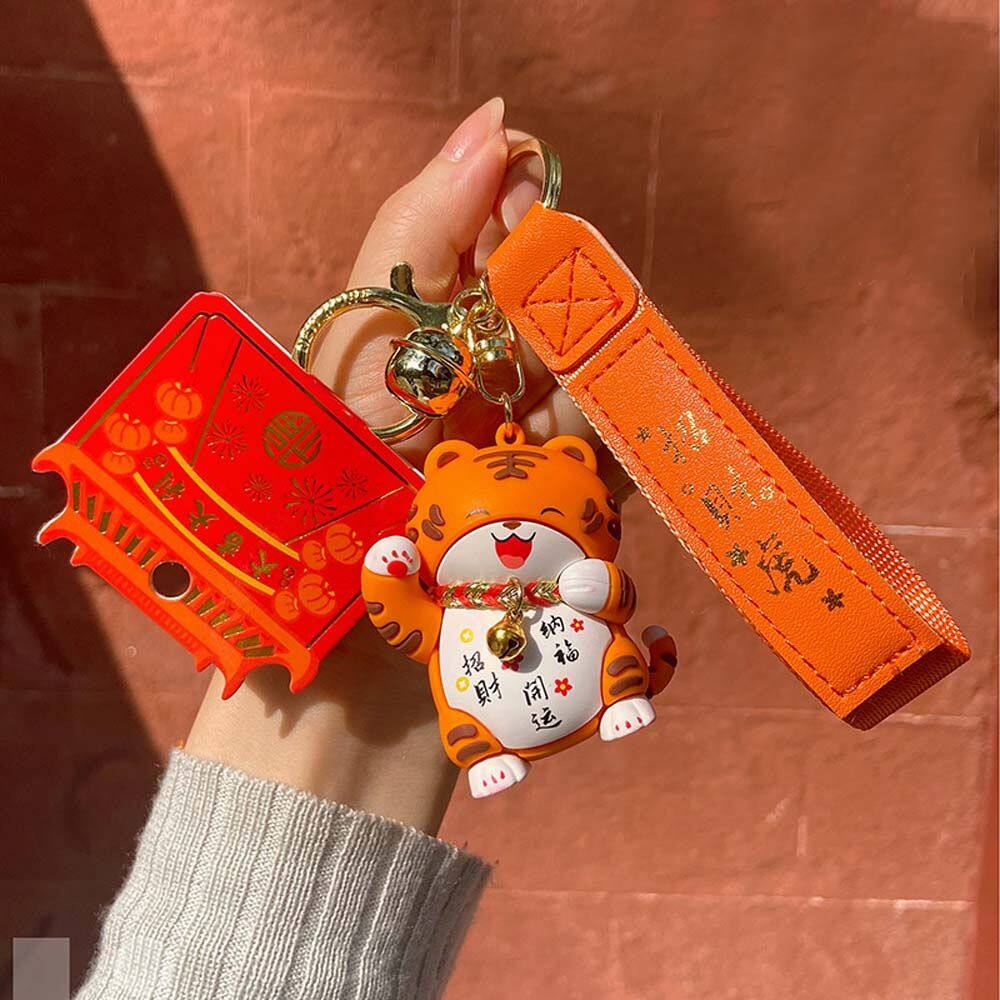 CHIHIRO Girl Cute Car Key Ring Chinese Lucky Tiger Ornament Pu Leather Korean Key Chains Cartoon Tiger Keychains Tiger Keyring Bag Pendant