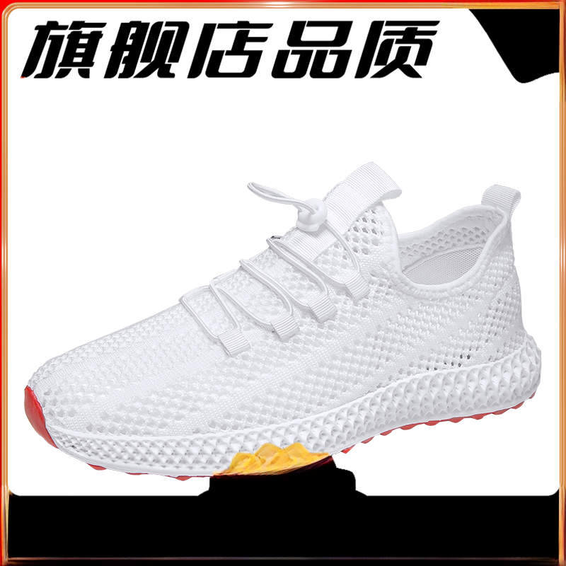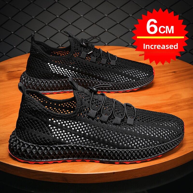 Mesh Surface Shoes Men's Summer Breathable Thin Mesh Surface Hollowed Large Mesh Men's Shoes Casual Running Black Flyknit Sneaker