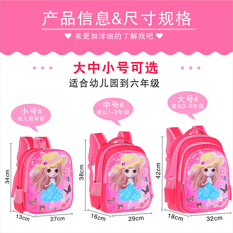 Cartoon Schoolbag Primary School Student Female 1-2-3-4-6 First Grade Girl Girl Kindergarten Burden Reduction Backpack