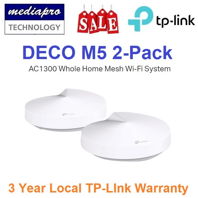 TP Link DECO M5 2-Pack WiFi MESH System ( Pack of 2 ) AC1300 Dual Band Gigabit MU-MIMO WiFi Mesh Router (Whole Home Mesh WiFi System) Works with all Telcos (Supports IPTV)- 3 Year Warranty by Local Ag