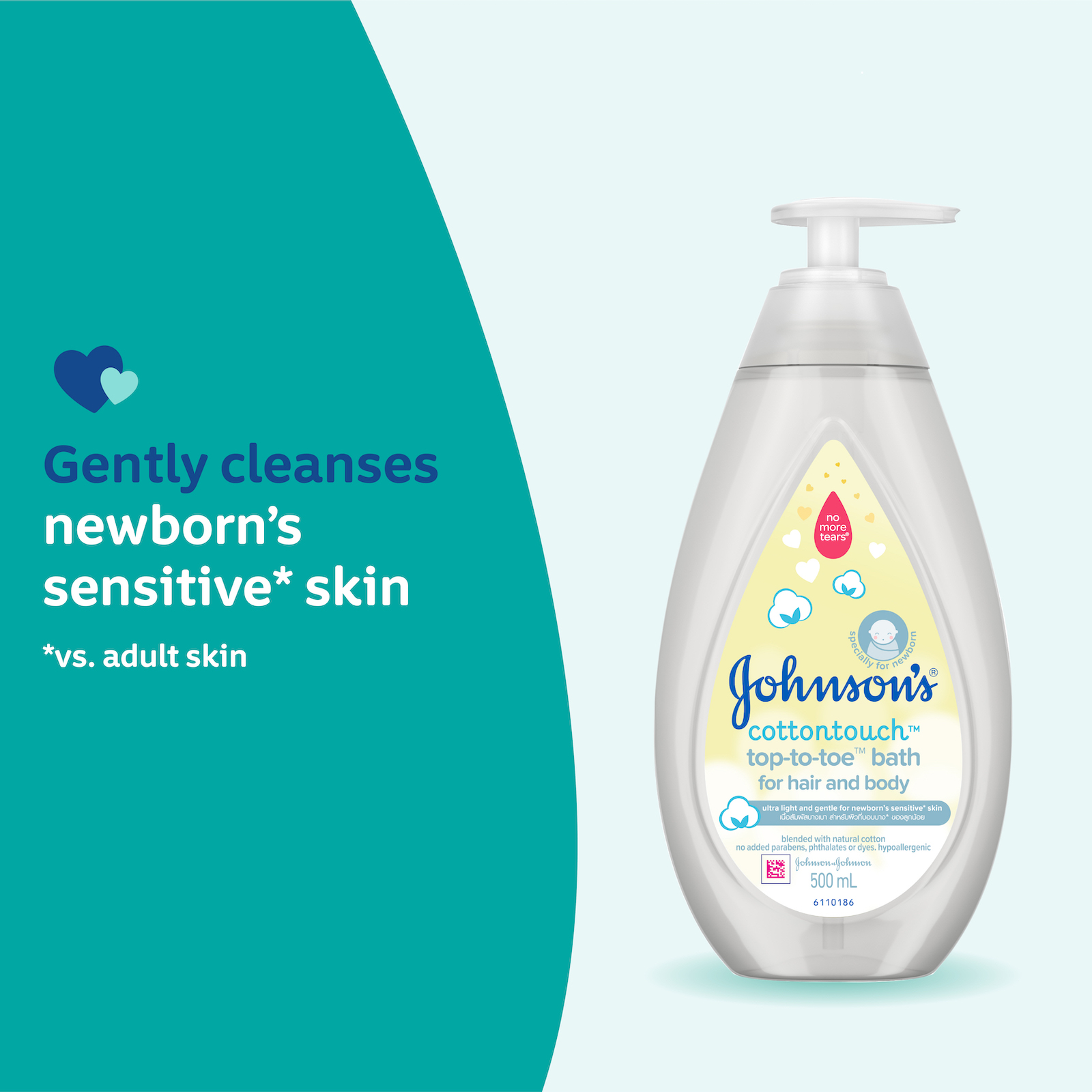 Johnson’s® Cottontouch™ Face & Body Bath is Ultra light and gentle for newborn’s sensitive skin. Your baby's skin is up to 30% thinner than yours so it needs ultra gentle and delicate care.