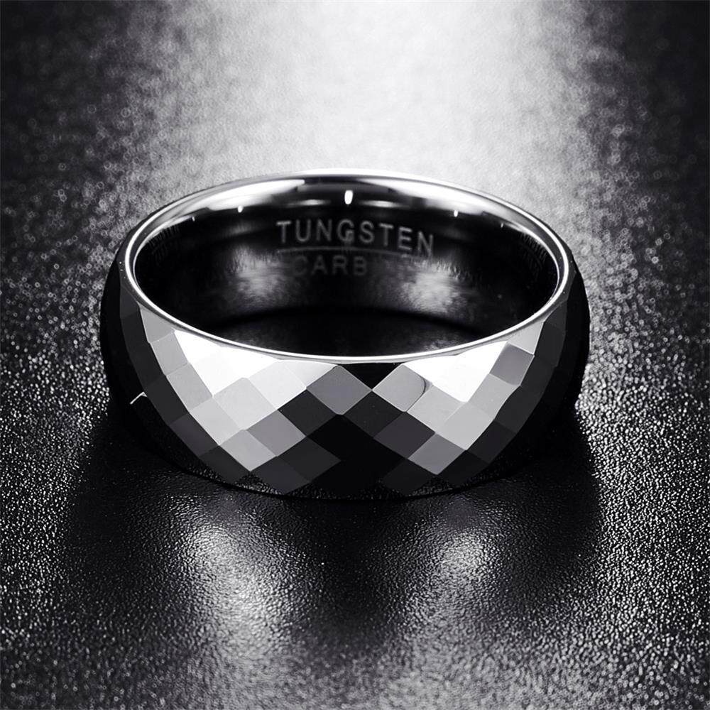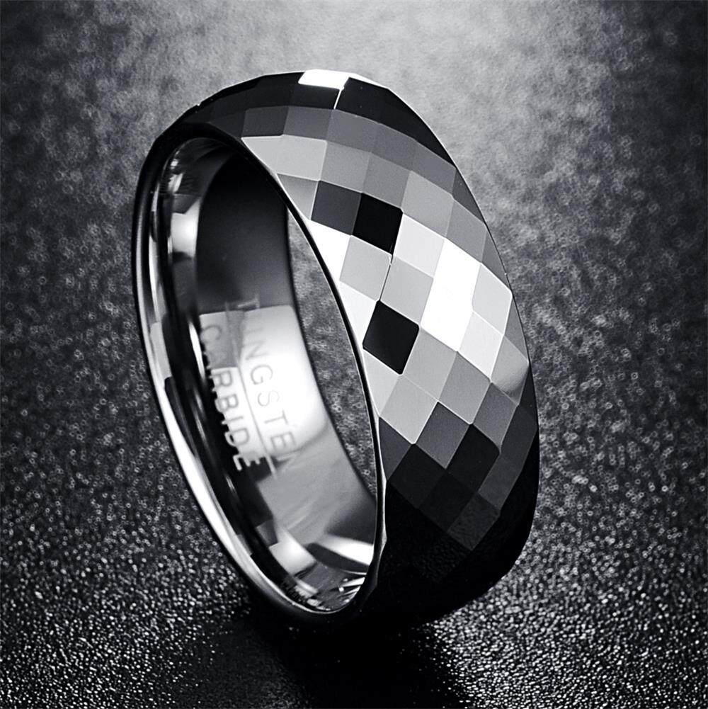 AVECON 【Support Engrave】Men's 8mm Wedding Band Multi-Faceted High Polished Domed Tungsten Carbide Ring Comfort Fit Size 7-12