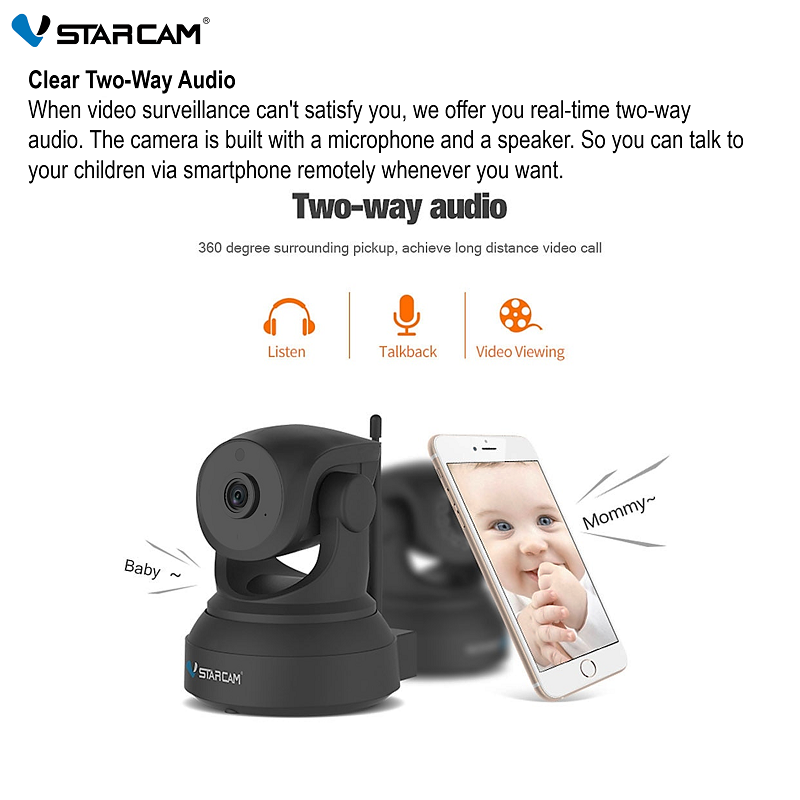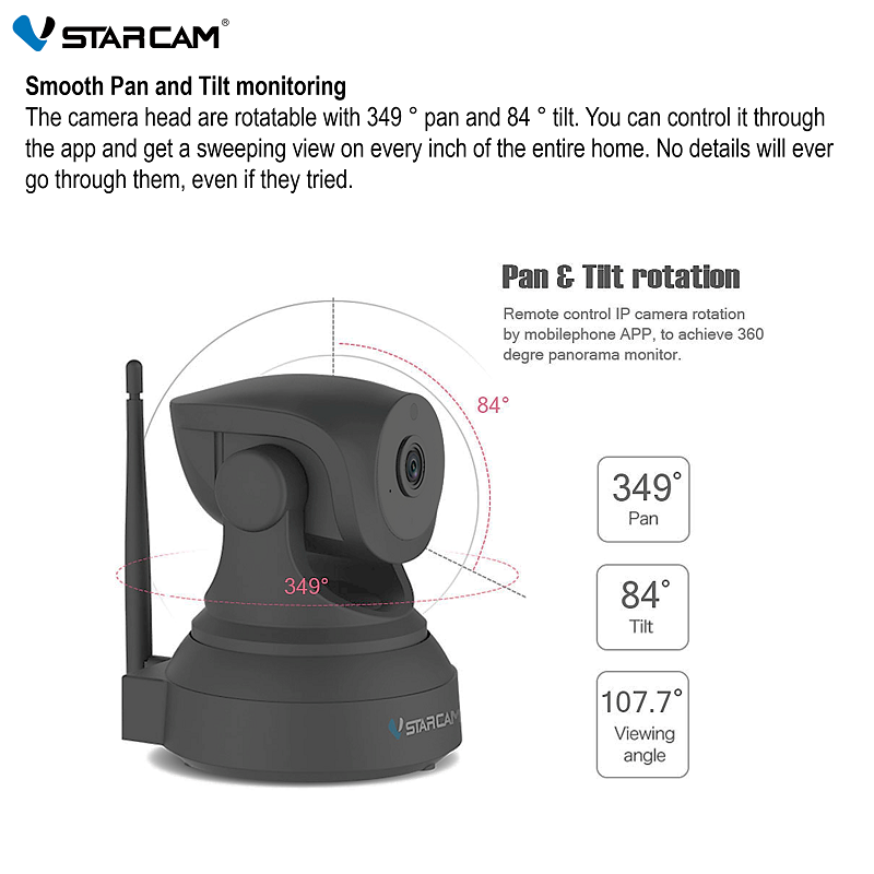 Upgraded 3MP Vstarcam Black C82R Wireless WiFi IP Camera with Auto Motion Tracking, IR-Cut Night Vision, 2-Way Audio CCTV Camera (App:Eye4)