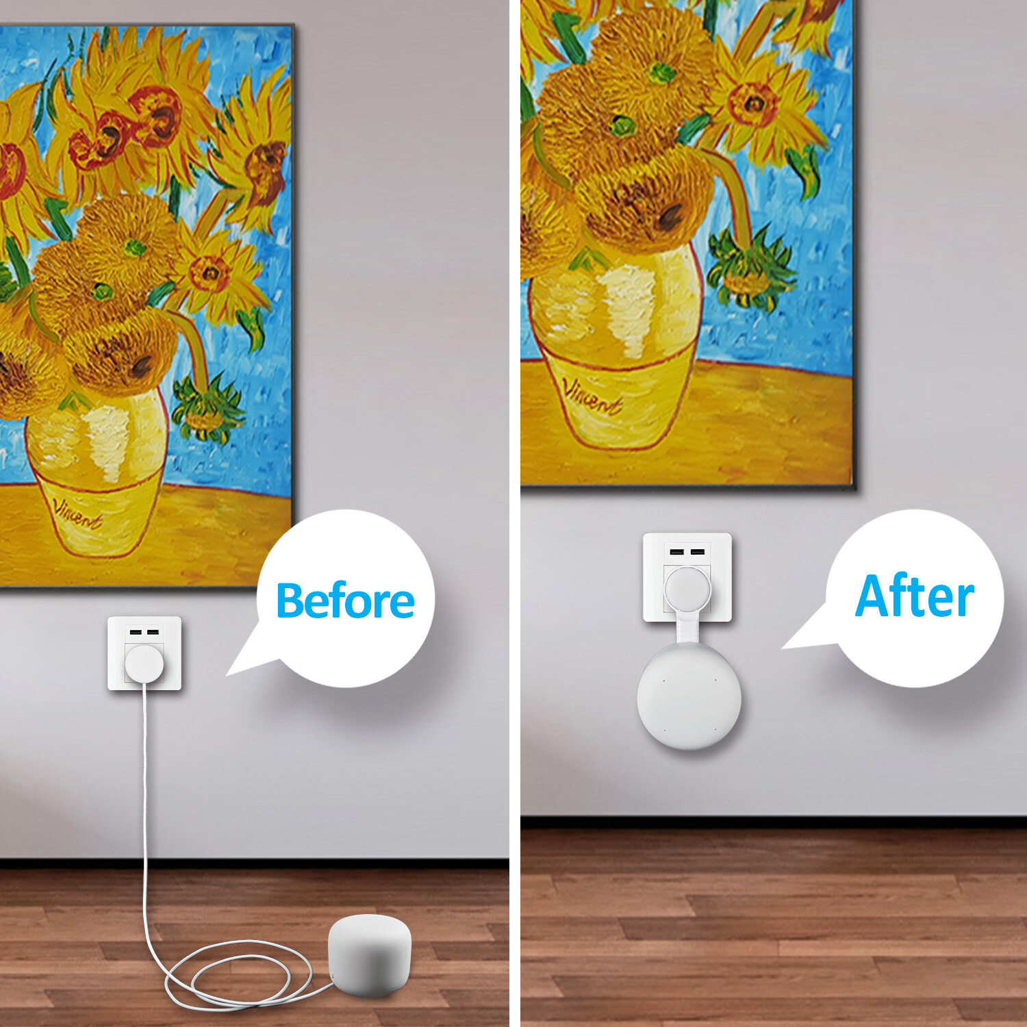 Easy to installation --- No need any tools , and the Google Nest Point can be mounted sturdily on the plug . So easy to use this smart wall mount for your Google Nest Point .