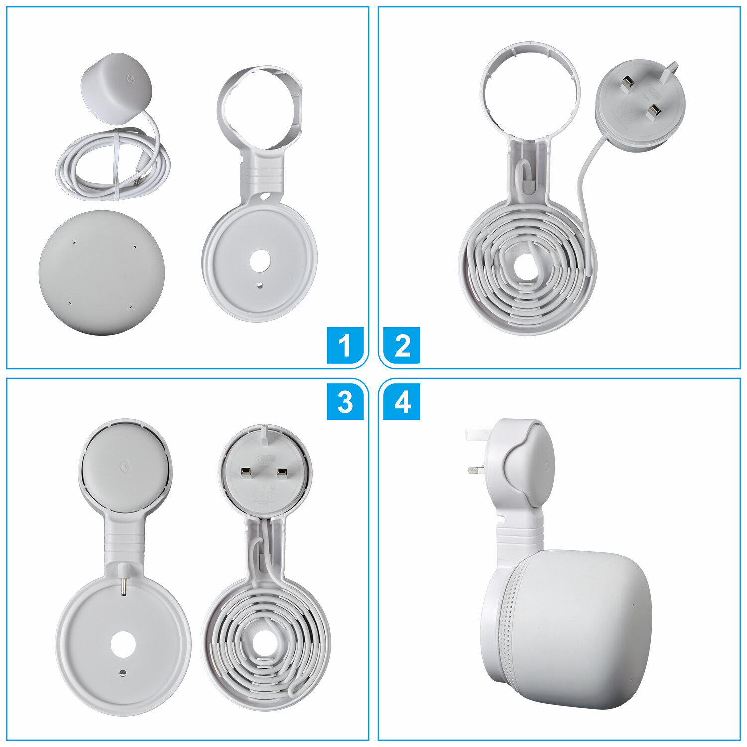 CORD MANAGEMENT and STURDY --- The cable can be wrapped through the reels which is back of the google nest point wall mount where is specially designed for the Google nest wifi Point to hide the messy wires . From then on , say goodbye to the meesy wires .