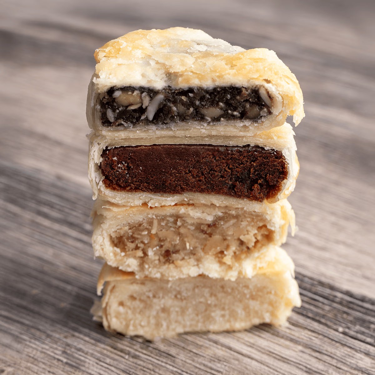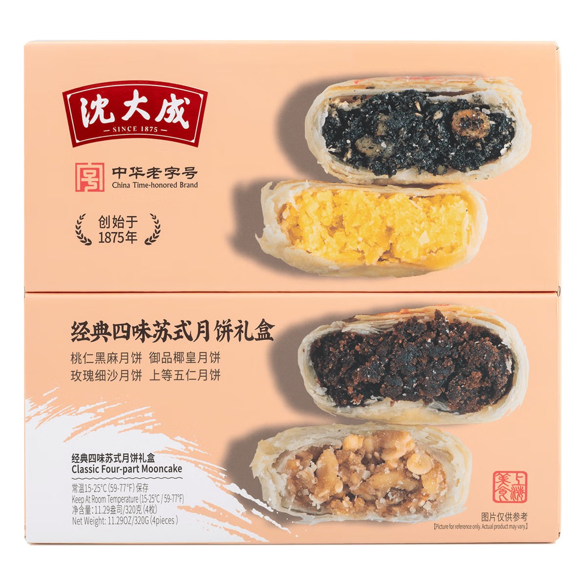 Mid-Autumn Festival Mooncakes - Classic Four Flavors - Suzhou-Style Mooncake Gift Box (4 pieces, 320g) - Black Sesame, Peach Kernel, and Five-Nut Flavor