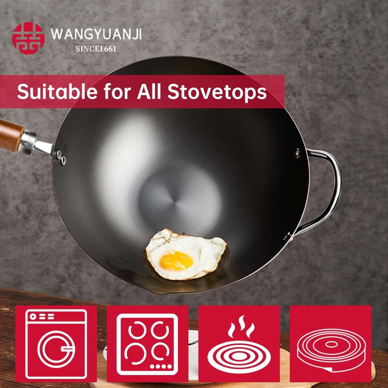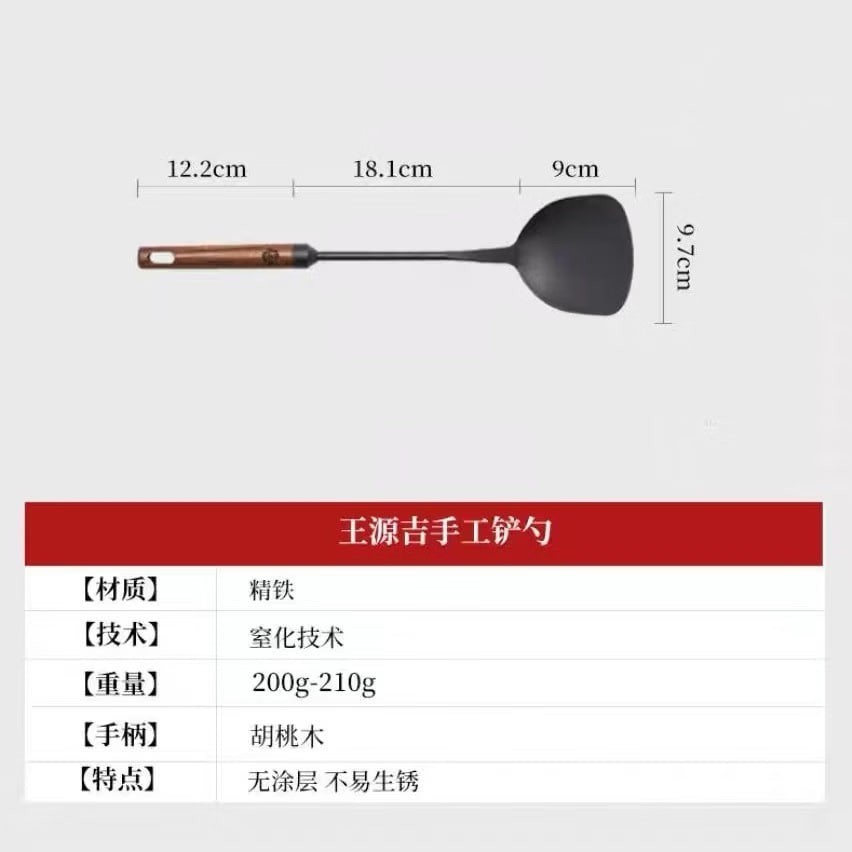 Includes a free spatula, oil-sprinkling pan, and steel wool. Wang Yuanji 34cm fine iron wok.